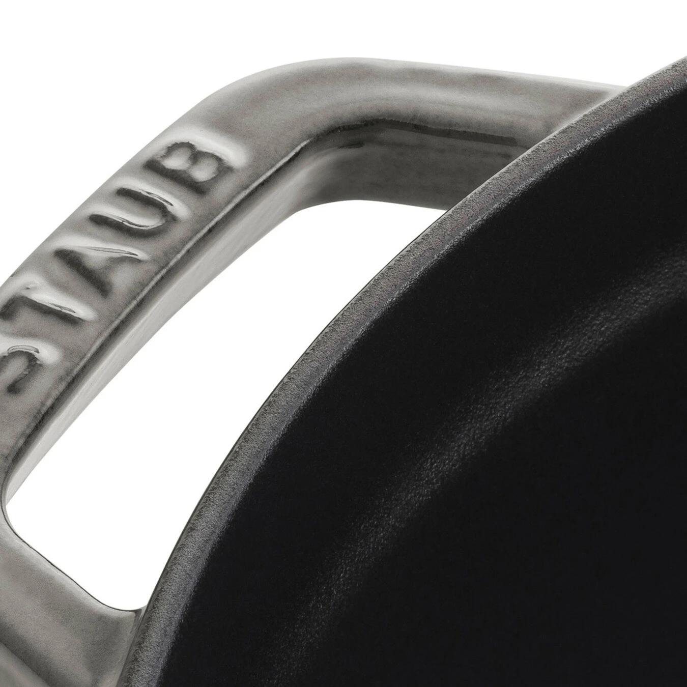Le cocotte Staub sono casseruole in ghisa, con rivestimento interno in smalto nero opaco. I principali vantaggi di questo strato di smalto sono l’immediata possibilità di utilizzo, i buoni effetti di brasatura e stufatura e le proprietà del materiale che migliorano progressivamente con l’uso e con il passare del tempo. Le cocotte in ghisa immagazzinano il calore in modo molto uniforme e lo rilasciano lentamente in fase di cottura, ideale per ricette che richiedono una rapida scottatura seguita da una lenta brasatura a bassa temperatura. Poiché il materiale trattiene anche il freddo, le cocotte sono perfette anche per la preparazione di dolci e macedonie di frutta. La casseruola rotonda della serie La Cocotte ha un diametro di 20 cm un’altezza di 9,5 cm escluso il coperchio e una capacità di 2,2 litri. Compresi i manici, la cocotte è lunga 26,3 cm e si adatta perfettamente a tutti i forni. La struttura del coperchio con semisfere permette alla condensa di gocciolare uniformemente sul contenuto della pentola, ottenendo una carne particolarmente succosa e tenera. Stupite i vostri ospiti con il design tradizionale e il colore grigio grafite di questo elegante piatto da portata, perfetto per servire direttamente dal forno alla tavola. Emozionate la famiglia o gli ospiti con piatti extra gustosi, serviti direttamente dalla cocotte, grazie alla smaltatura interna che esalta il sapore naturale del cibo stesso.